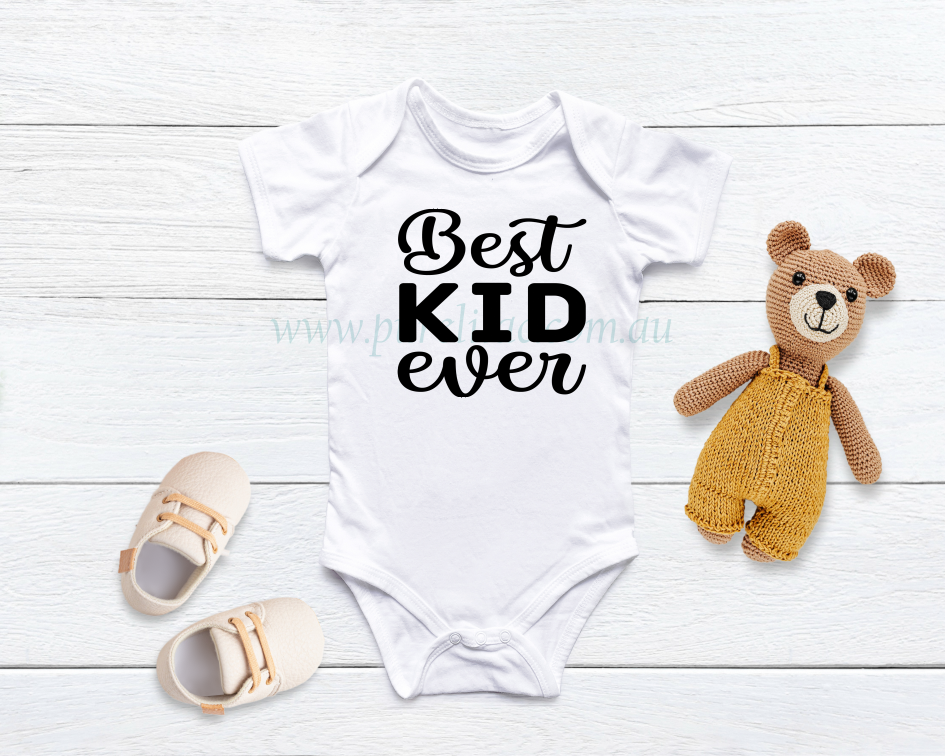 This beautiful baby onesie is the perfect gift for a new born baby, baby shower, or mum to be. The design features the phrase `Best Kid Ever` and is available in a variety of colours. Crafted from organic cotton, this onesie is sure to be a hit with both baby girls and baby boys.
